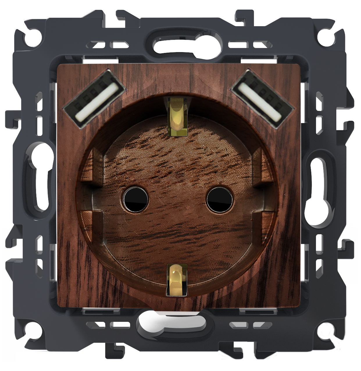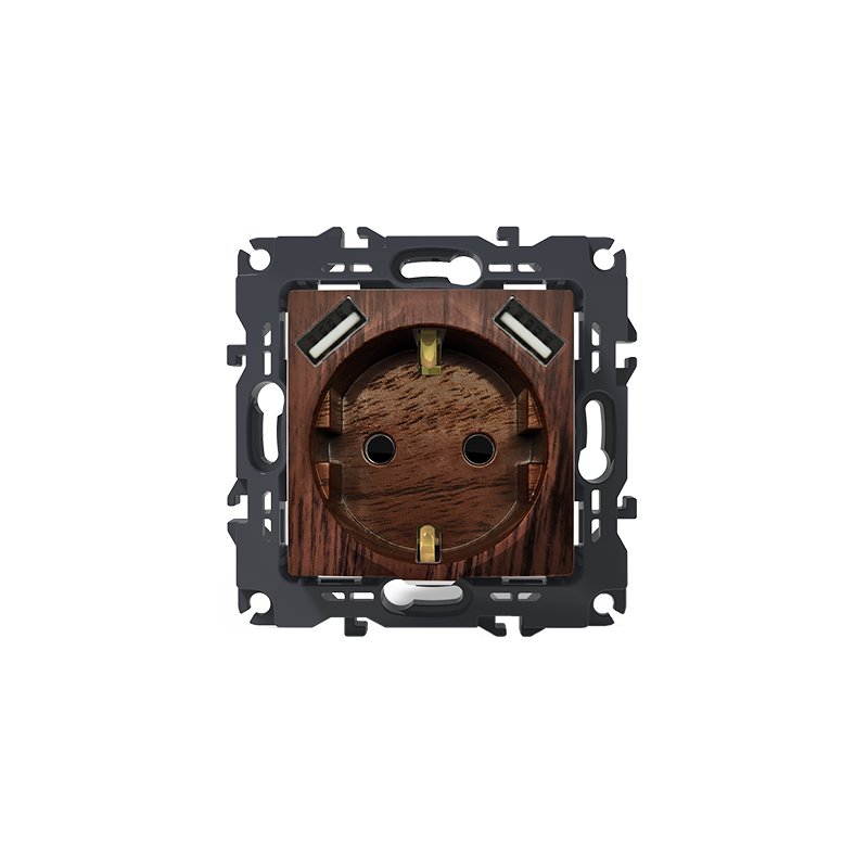 PRIME ΠΡΙΖΑ ΣΟΥΚΟ ΑΣΦΑΛΕΙΑΣ 1x2P+E 16A 250VAC & 2 USB 5VDC 3.1A IP20 ΞΥΛΟ