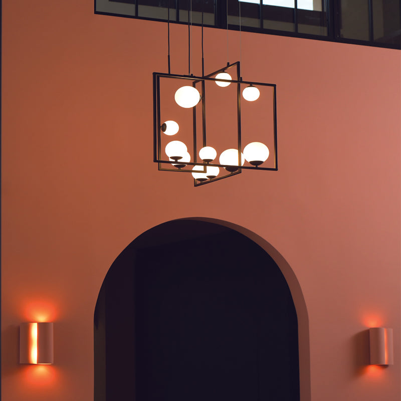 • Φόρτωση εικόνας στο εργαλείο προβολής Συλλογής, ^NETTO ΚΡΕΜΑΣΤΟ Φ/Σ 4xG9 QUADRO ΜΑΥΡΟ ΜΕΤ/ΚΟ +ΛΕΥΚΟ ΓΥΑΛΙ 49Χ12Χ120CM