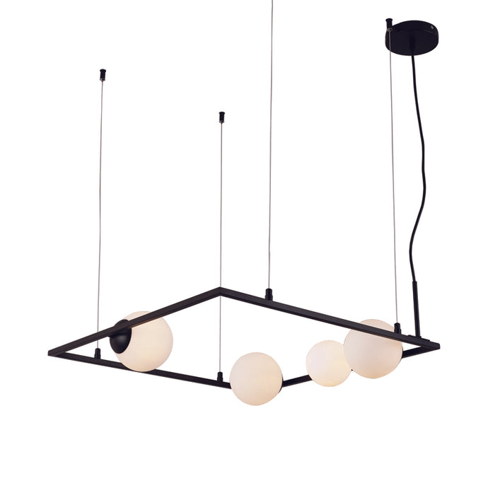 • ^NETTO ΚΡΕΜΑΣΤΟ Φ/Σ 4xG9 QUADRO ΜΑΥΡΟ ΜΕΤ/ΚΟ +ΛΕΥΚΟ ΓΥΑΛΙ 49Χ12Χ120CM