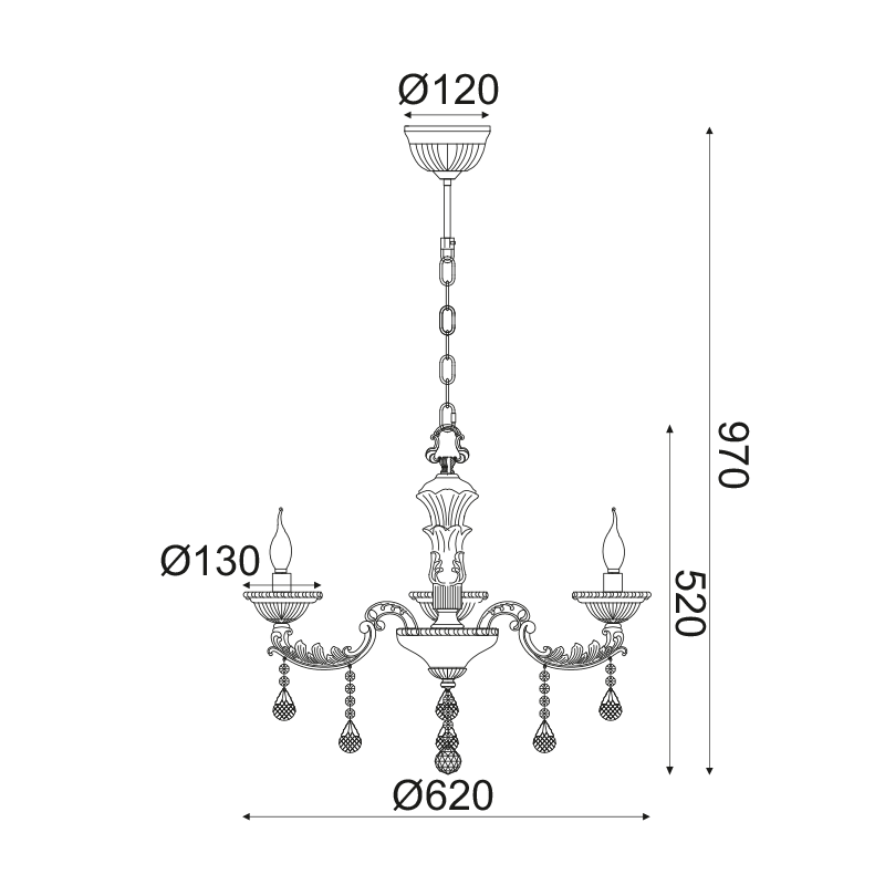 NETTO ΚΡΕΜΑΣΤΟ Φ/Σ 3ΧΕ14 ΜΕΤΑΛΛΙΚΟ ΧΡΩΜΙΟ+ΚΡΥΣΤΑΛΛΟ Φ62ΧΗ97CM ROMANOFF
