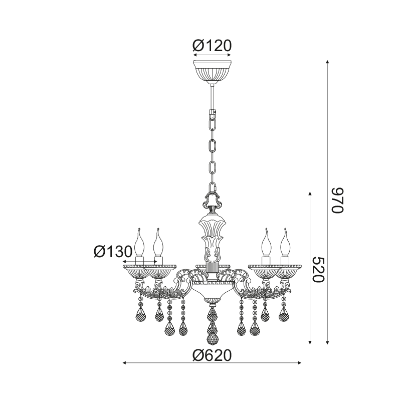 NETTO ΚΡΕΜΑΣΤΟ Φ/Σ 5ΧΕ14 ΜΕΤΑΛΛΙΚΟ ΧΡΩΜΙΟ+ΚΡΥΣΤΑΛΛΟ Φ62ΧΗ97CM ROMANOFF