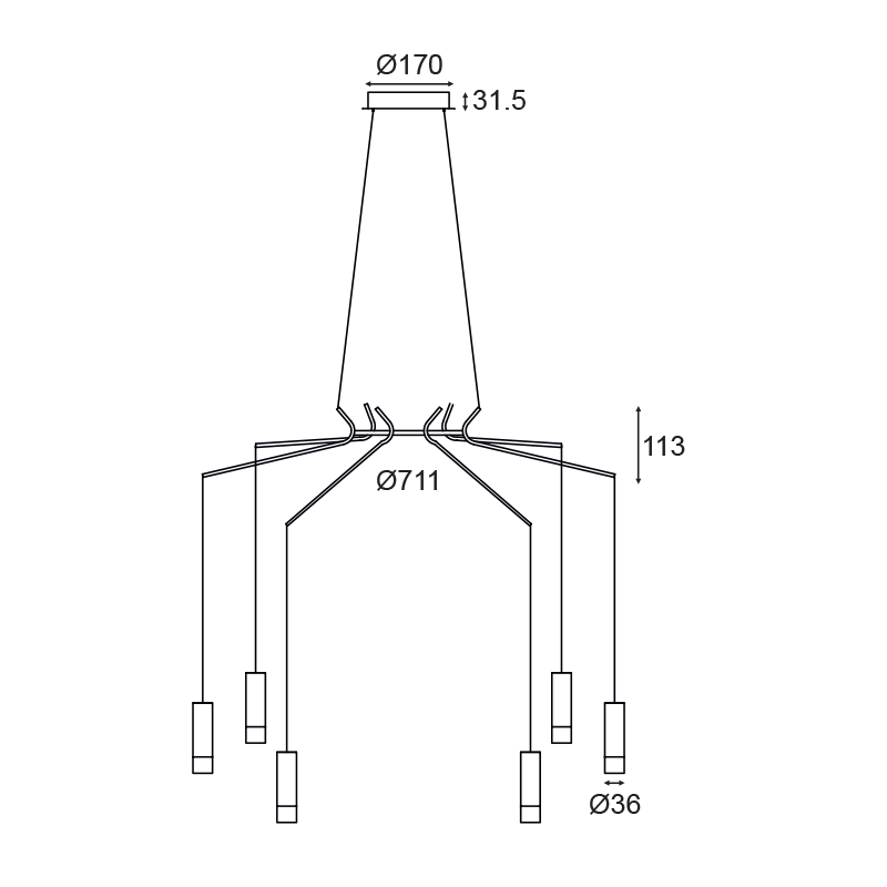 NETTO ΚΡΕΜΑΣΤΟ Φ/Σ 6ΧG9 ΜΑΥΡΟ ΑΛΟΥΜΙΝΙΟ 6x D3,6XH13CM ΚΑΛΩΔΙΟ 1,3M TERES