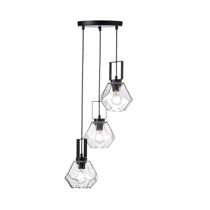 NETTO ΚΡΕΜΑΣΤ Φ/Σ 3ΧΕ27 ΓΥΑΛΙ ΔΙΑΦΑΝΟ+ΜΑΥΡΟ ΜΑΤ ΜΕΤΑΛΛΟ Φ30ΧΗ101CM DIAMONDRA